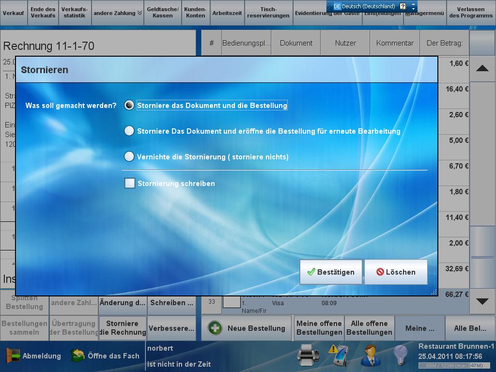 MicroPOS Gastro Stornierung